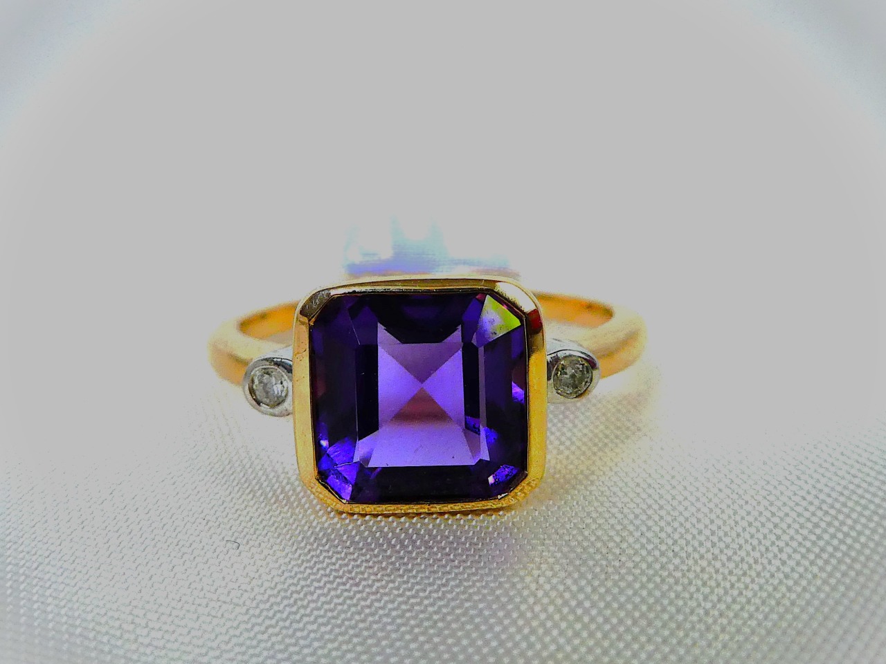 9ct Yellow gold Amethyst and Diamond ring