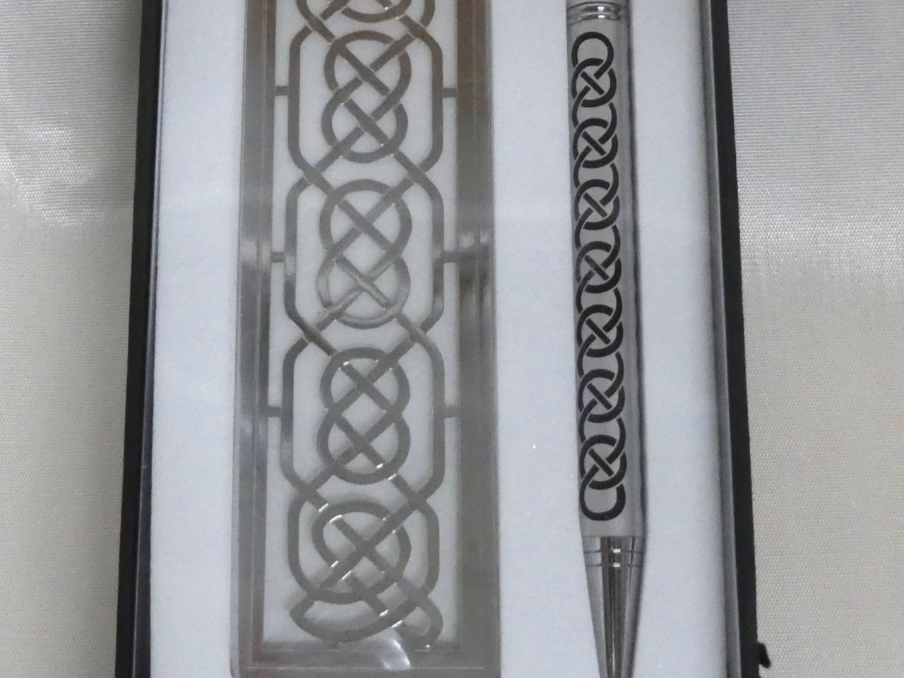 Beautiful Celtic bookmark and a black ball point pen in presentation box.