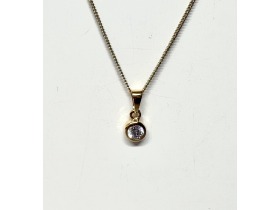A Cubic Zirconia set in 9ct yellow gold. This pendant comes with a standard 18" filed curb chain, should you require an alternate length or style, please contact us.