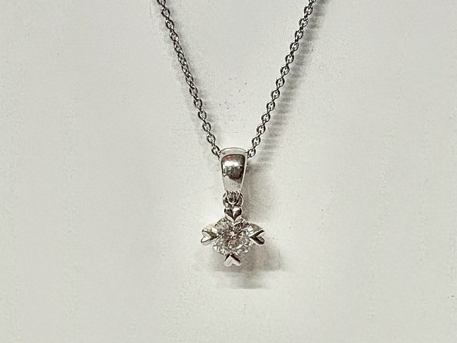 18ct white gold round cut diamond pendant measuring .35ct. This pendant comes with a 18ct white gold 16" chain