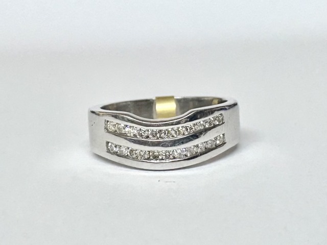 22 round brilliant cut diamonds totalling .44ct. This ring is currently available in 18ct white gold but can be made to order in all other metals. Should you require an alternative size, please contact us