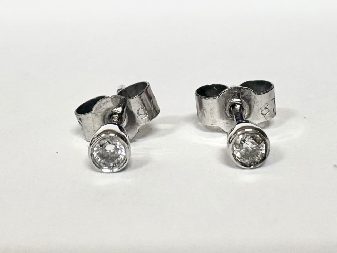 Diamond stud earrings measuring .10ct in total, set in 9ct white gold. Fitted with posts and butterfly's.