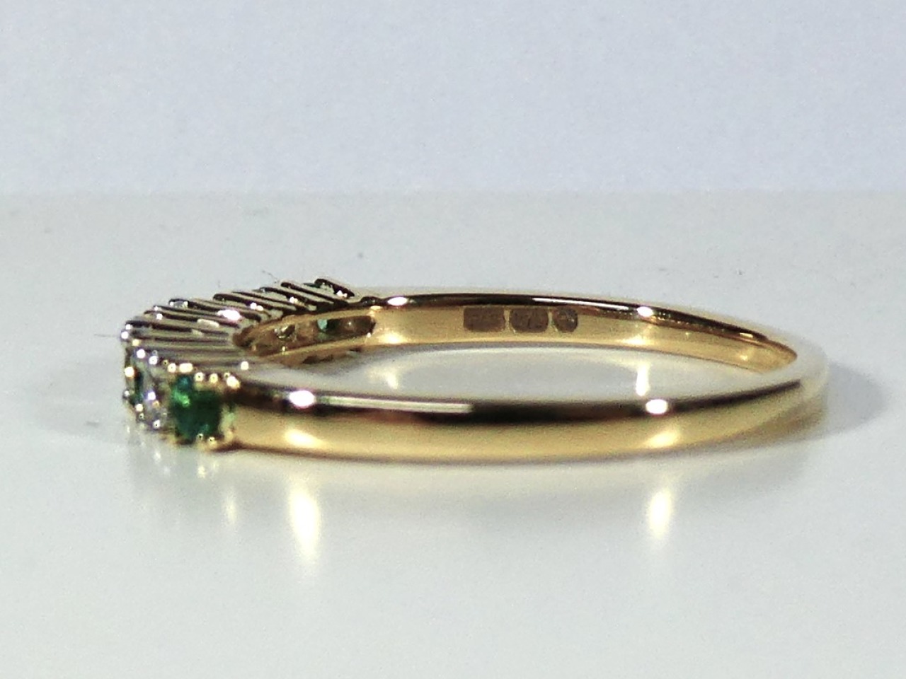 9ct yellow gold ring with 5 emeralds and 4 diamonds