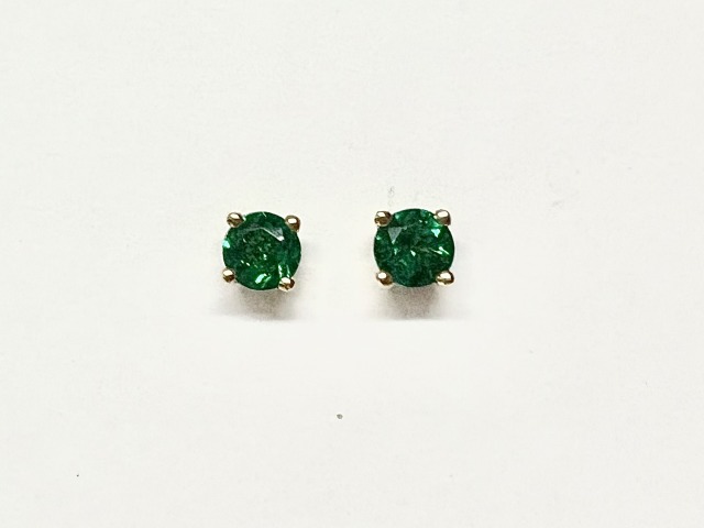Lab grown round cut emerald earrings. Set in 9ct yellow gold.