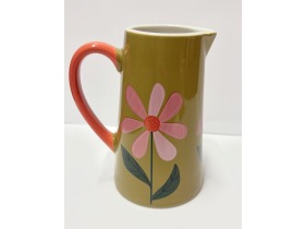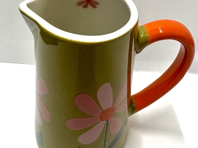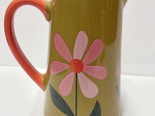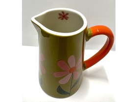 Belly button designs- Green with pink flowers ceramic small jug.