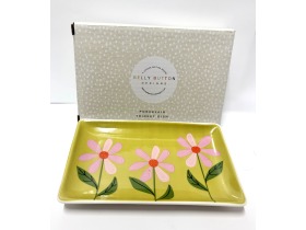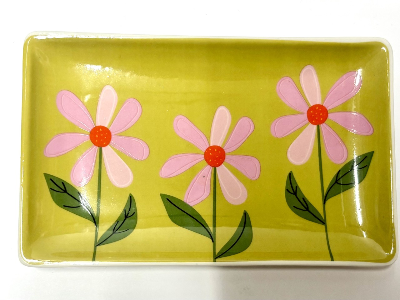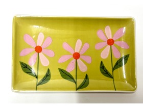 Belly button designs- Green with pink flowers ceramic trinket dish.