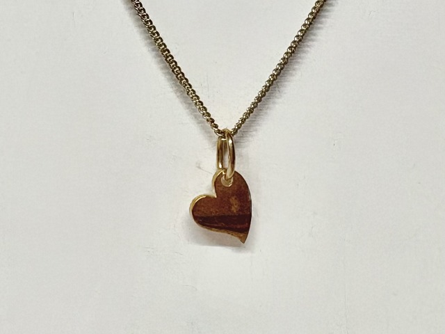 9ct yellow gold heart pendant measuring 0.6cm in width and 0.7cm in height . This pendant comes with a standard 18" 9ct yellow gold chain.