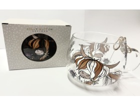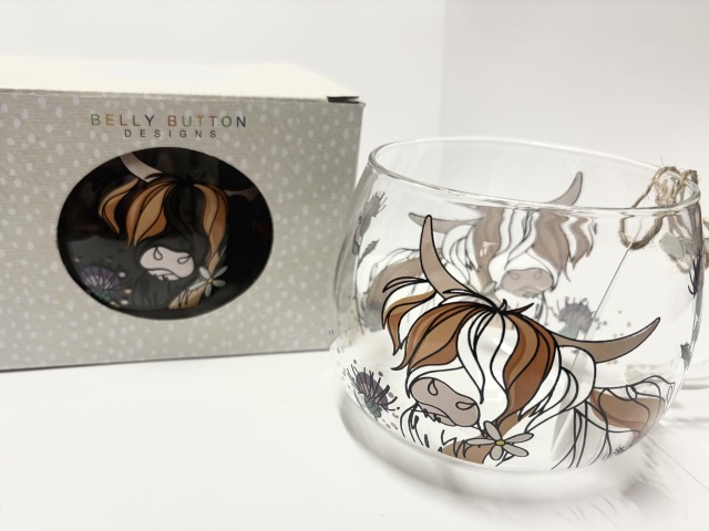 Belly button designs- Highland cow glass mug.