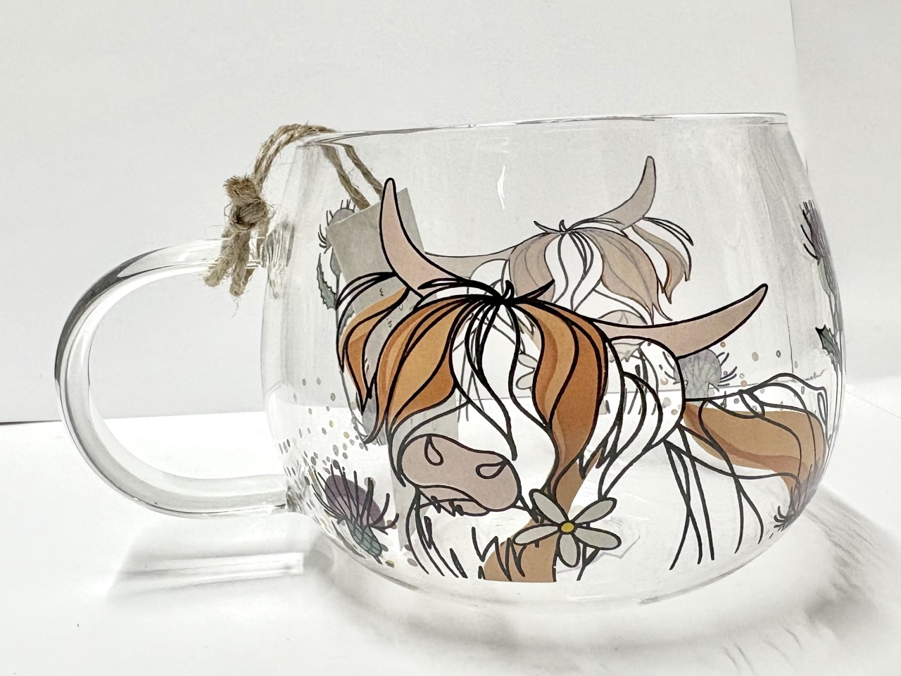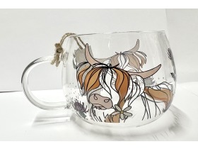 Highland cow glass mug.