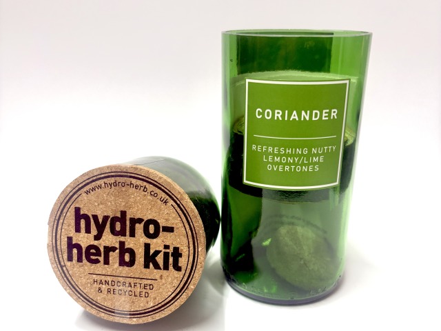 Hydro Herb Coriander. Grown your own herbs from home, handcrafted & recycled. Measuring 20cm in height. Comes with step by step instructions.