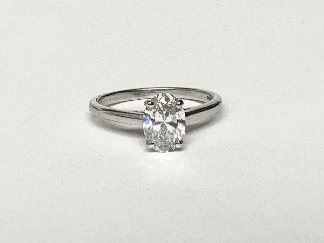 One oval brilliant cut diamond totalling 1.01ct. This ring is currently available in 9ct white gold but can be made to order in all other metals. IGI certificate is available for all lab grown diamonds. Should you require an alternative size, please contact us