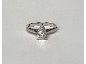 One pear brilliant cut lab grown diamond totalling 1ct. This ring is currently available in 9ct white gold but can be made to order in all other metals. IGI certificate available for all lab grown diamonds. Should you require an alternative size, please contact us