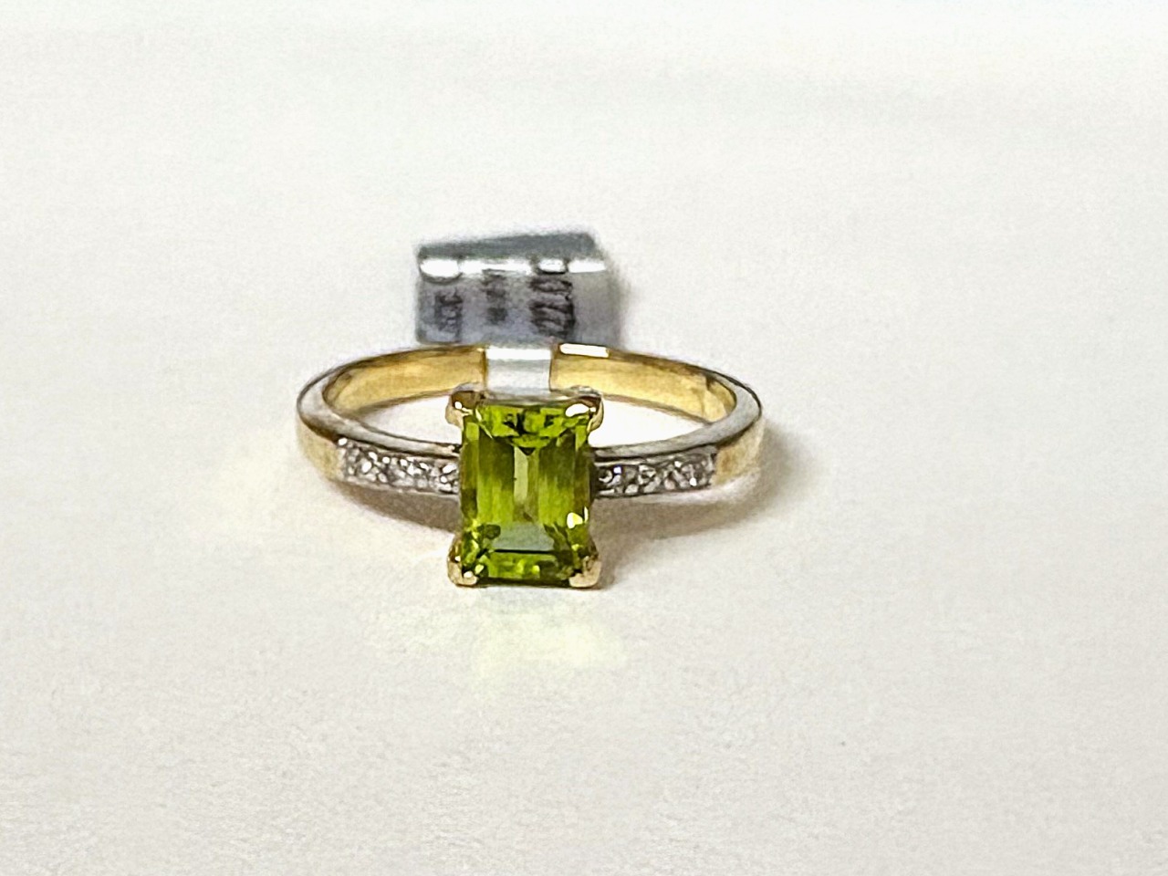9ct yellow gold ring with a Peridot and .03ct diamonds