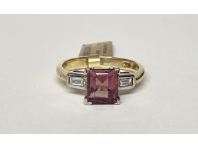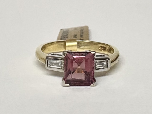 18ct yellow gold ring with diamond total of .18ct and pink tourmaline measuring 1.74ct