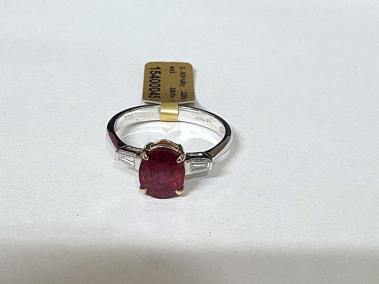 18ct white gold ring with 1.90ct Ruby and .12ct diamonds
