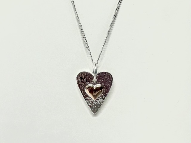 Silver heart pendant with rose gold plated accent heart.