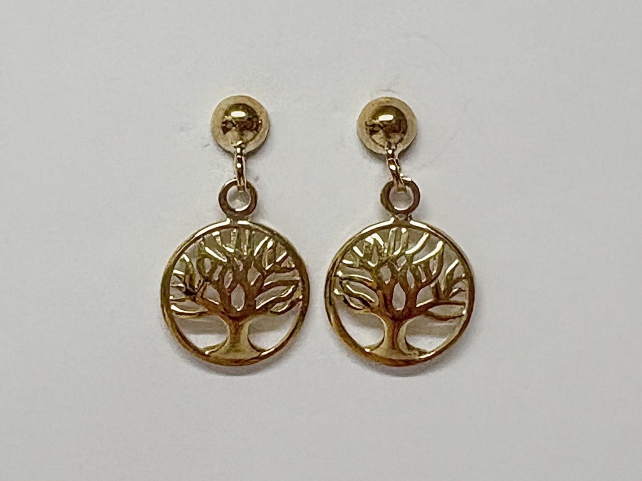 9ct yellow gold tree of life earrings. Measuring 1cm in width and 1cm in height. Fitted with ball and posts and butterfly's.