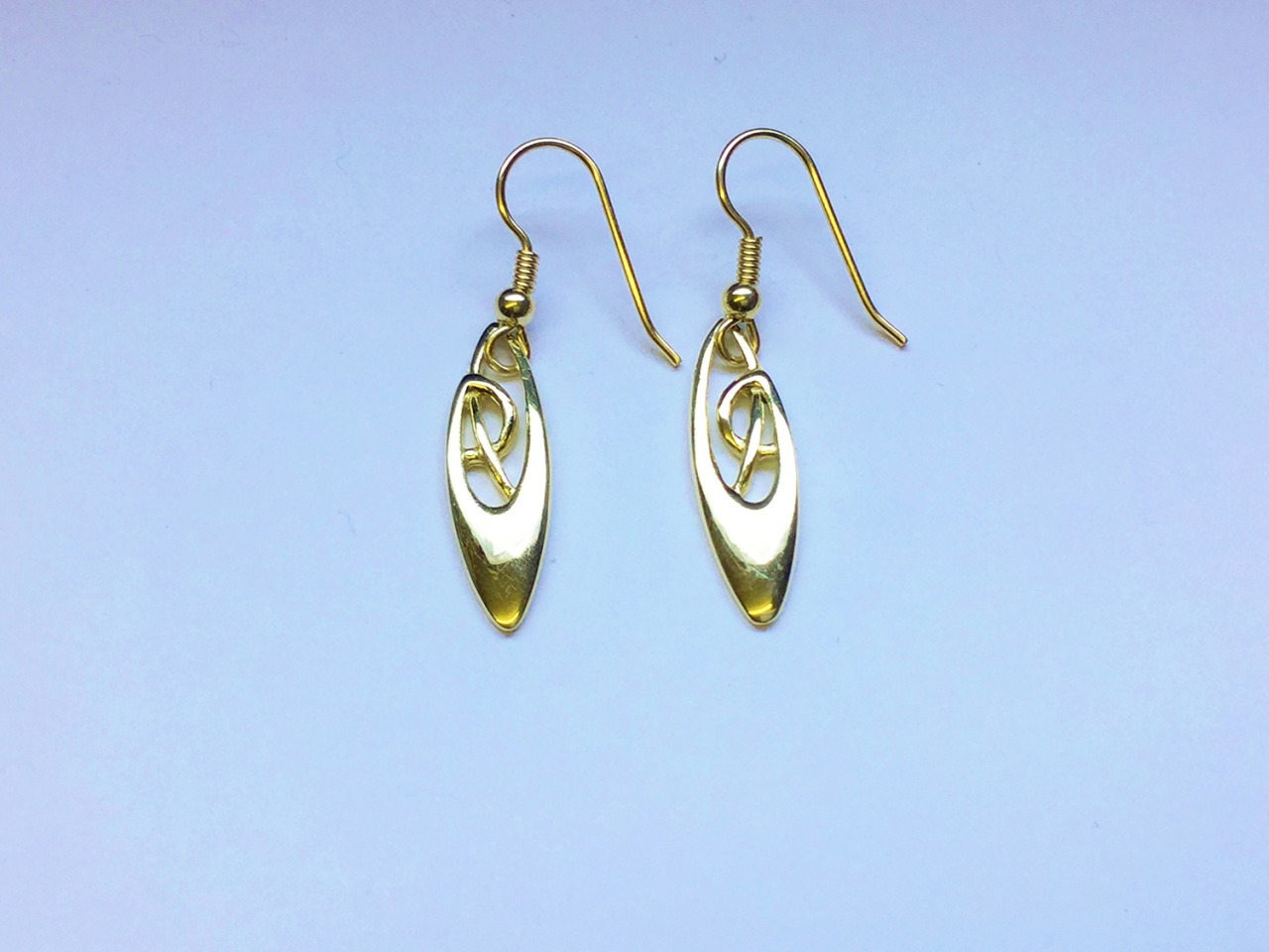 Archibald Knox style earrings with the Knox pattern measuring 2.5cm in height and .7cm in width. The earring fittings are available in hooks or pins.