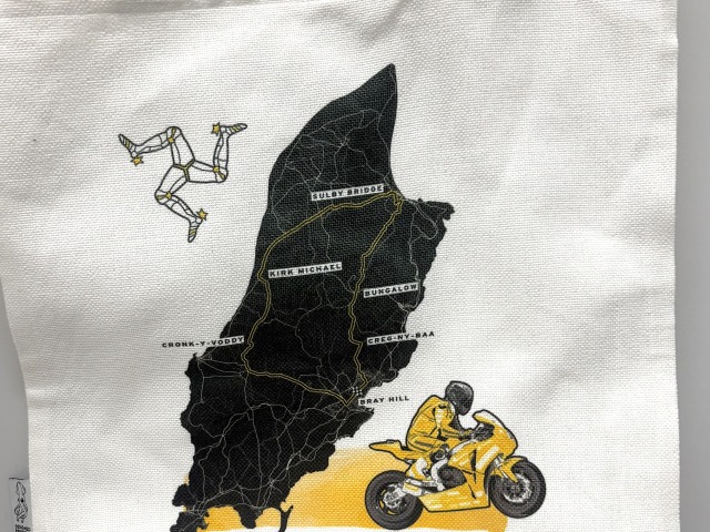 IOM TT tote bag measuring 40cm in height not including the handles and 37cm in width.