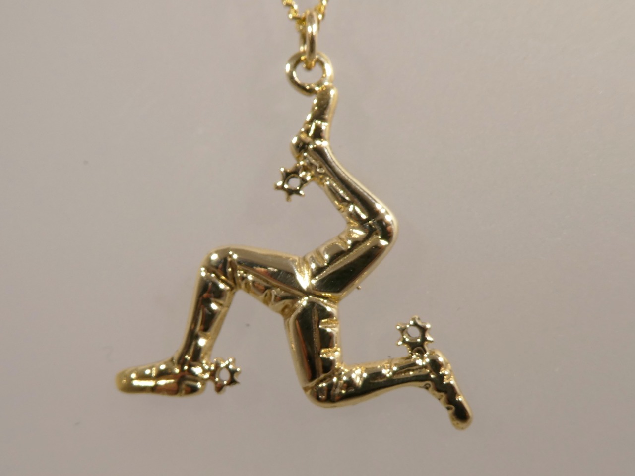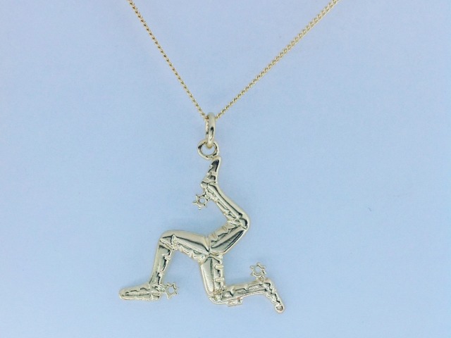 The three legs of man is our national symbol, it's motto translates to whichever way you throw me I stand. This pendant measures 2.3cm in width